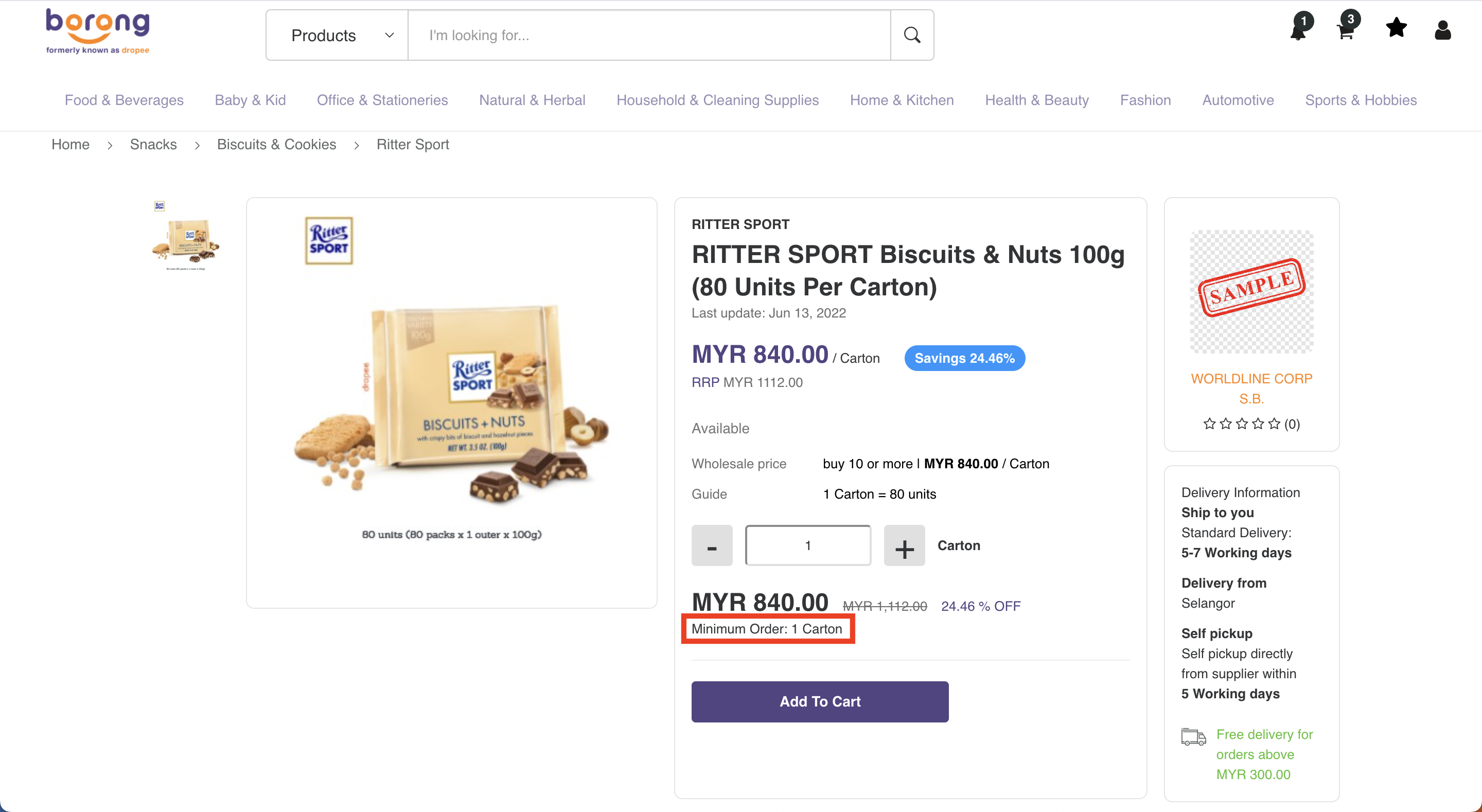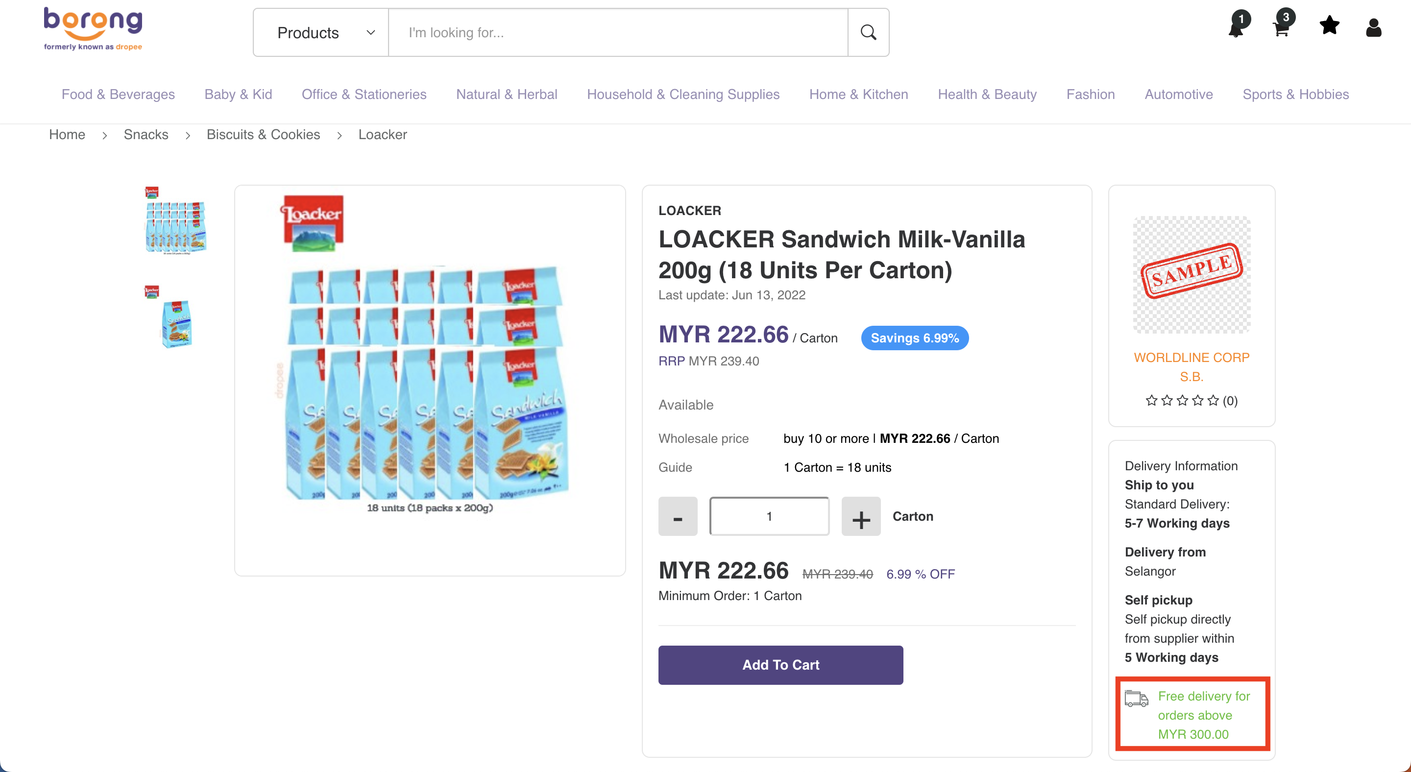 Today, we have over 10,000+ sellers on Borong, ranging from Food & Beverages to Baby & Toy supplies. For the full list of categories, go here.