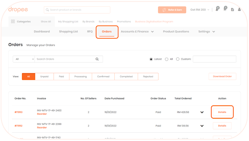 Go to www.borong.com and sign into your account. Go to your dashboard, and click on “Orders.” Once you’re there, view the “details” of the order you would like to replace or refund.