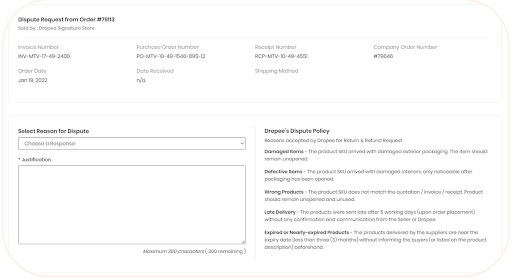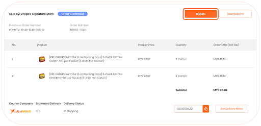 Click on the “Dispute” button on the top-right corner of your order information section.
