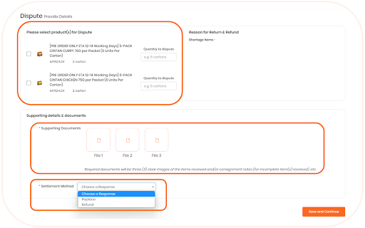 Under “Supporting Documents,” upload 3 clear photographs taken in site/return_refund_policy.Step 1, along with the consignment notes.